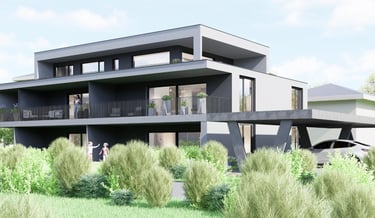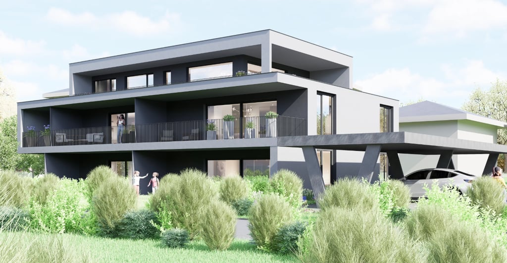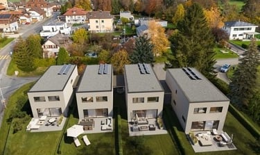 Ensemble résidentiel moderne avec appartements spacieux, terrasses et espaces verts, à proximité de Sion.
