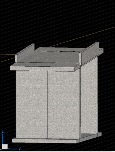 Plans d’exécution avec fondation complexe d'environ 1,75m d'épaisseur de radier.
