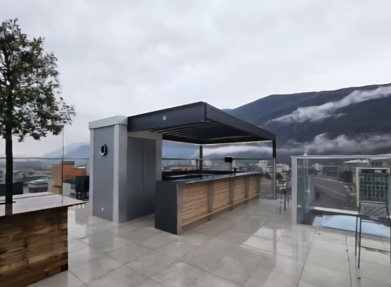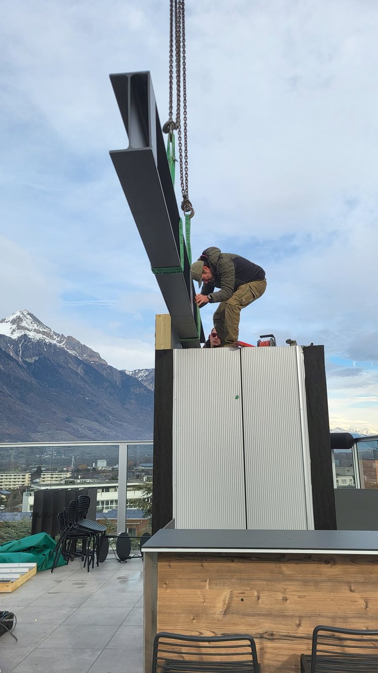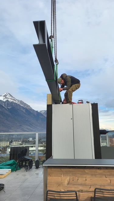 Le 7th Sky, situé au sommet de l’Hôtel Campanile à Martigny (Rue du Léman 15), est un rooftop bar élégant qui attire à la fois les amateurs de détente, de cocktails et d'événements conviviaux. Une sructure métallique en porte-à-faux, supportant et stabilisant la pergola et dimensionnée pour résister aux charges climatiques se mets en place pour protéger le bar.